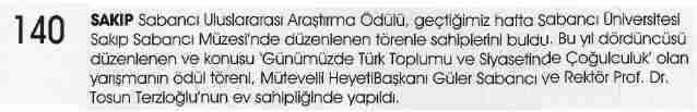 4. Sakıp Sabancı Uluslararası Araştırma Ödülü, 26 Mayıs 2009