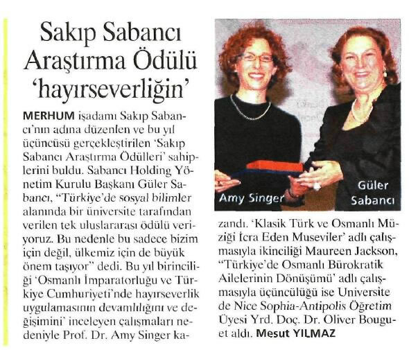 Sakıp Sabancı Uluslararası Araştırma Ödülü, 2008, 9 Haziran = Sakıp Sabancı International Research Award, June 9, 2008