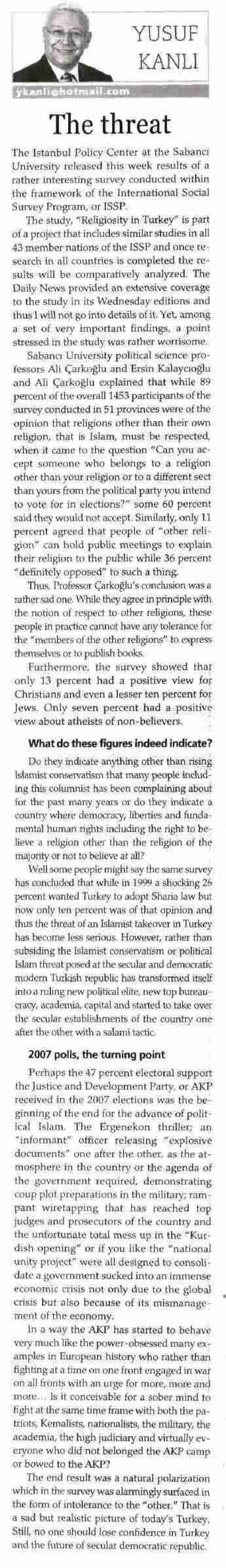 Hürriyet Daily News Gazetesi (19.11.2009) [p. 10]