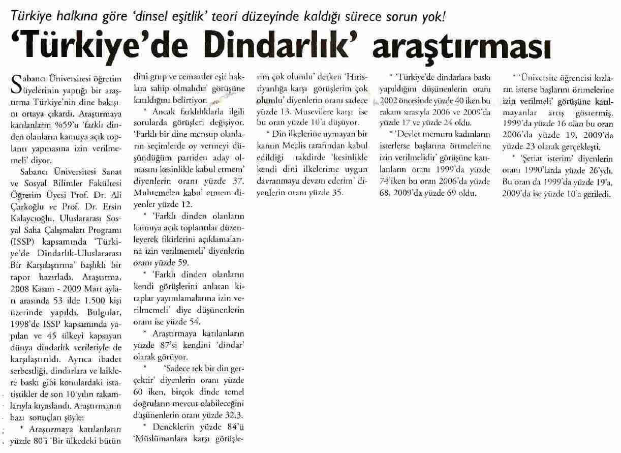 Türkiye'de Dindarlık: Uluslararası Bir Karşılaştırma (Sabancı Üniversitesi, 18.11.2009)