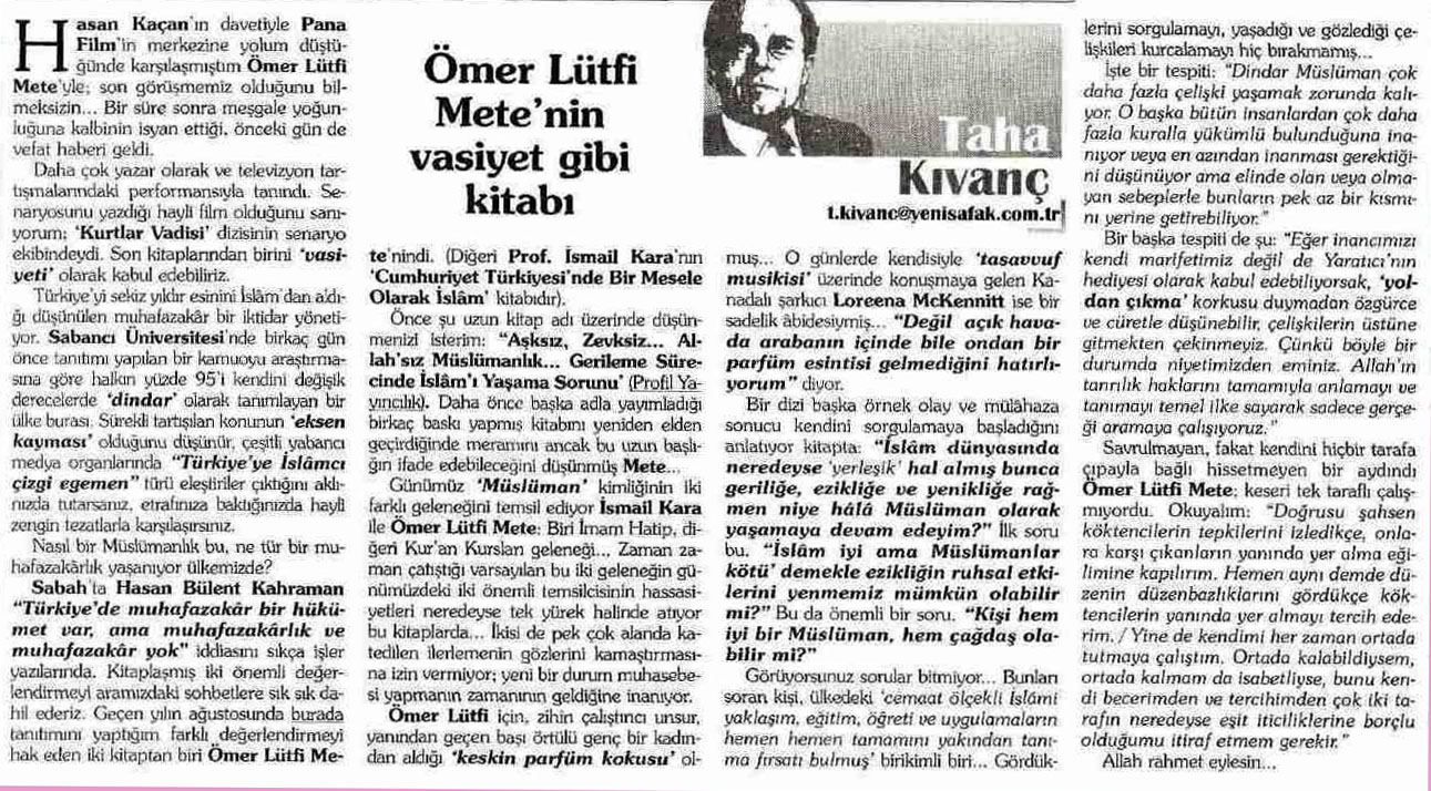 Yeni Şafak Gazetesi (20.11.2009) [p. 10]